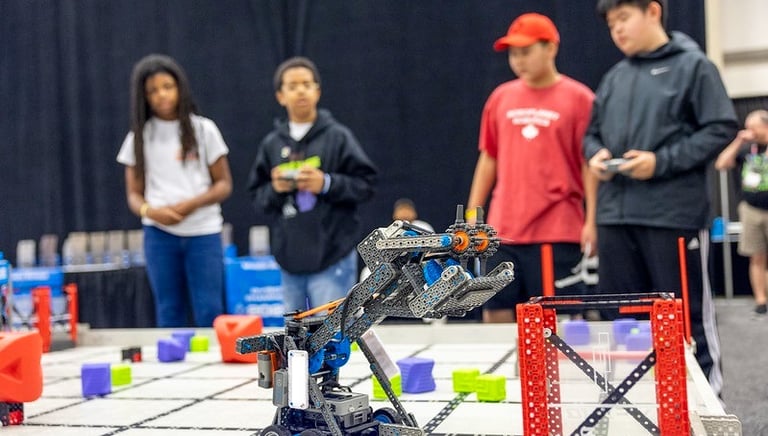 We use the VEX GO platform to teach robotics for this age group. It is an interactive construction system that teaches the fundamentals of STEM through fun, hands-on activities that help young students perceive coding and engineering in a fun and positive way.